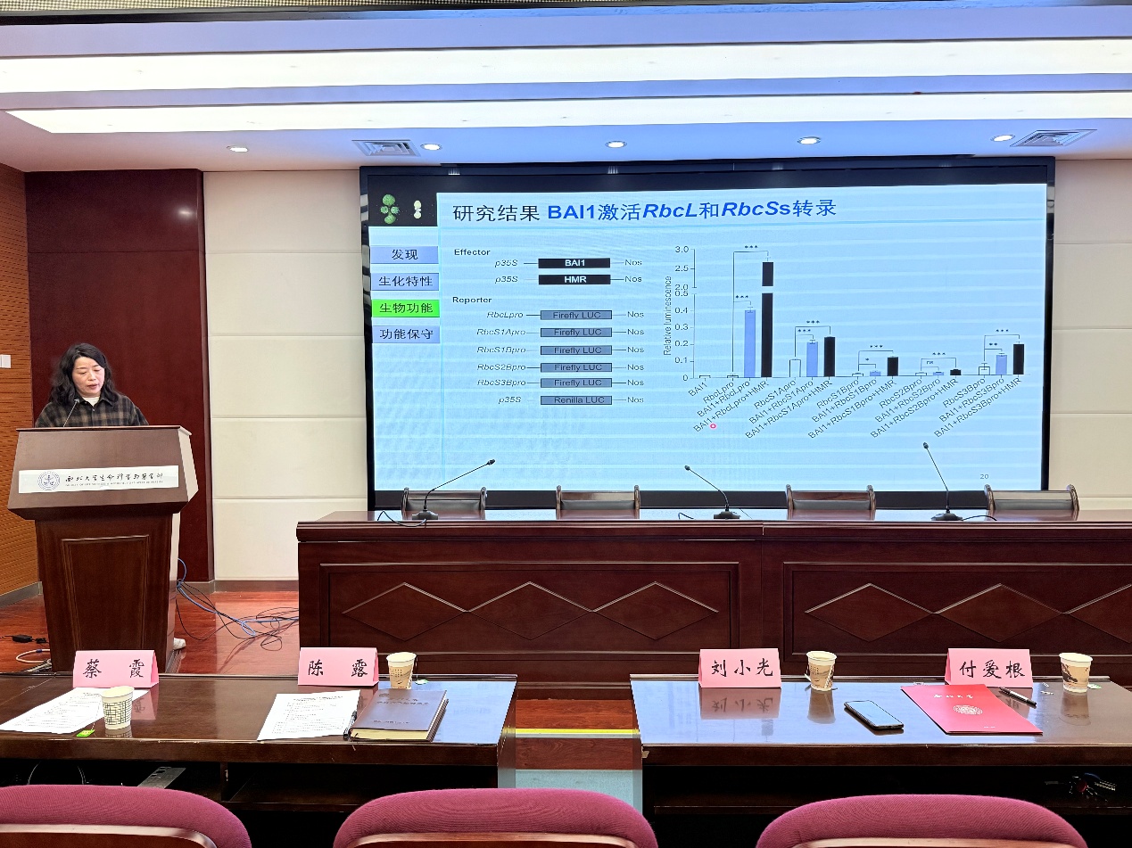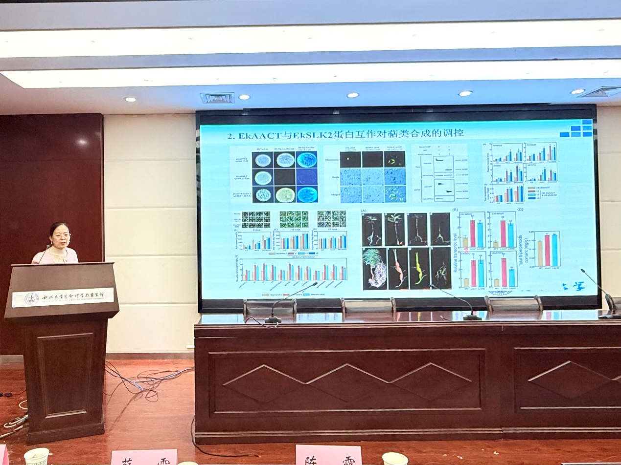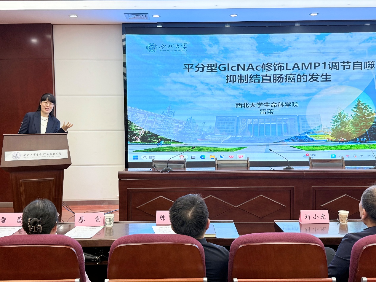 谭江丽教授分享了她带领学生在红碱淖地区开展昆虫多样性及种群动态与遗鸥生存关联研究时的经历,深入剖析了摇蚊、新斑绿蟌等关键昆虫对维持遗鸥种群稳定的重要意义;蔡霞教授介绍了含胶植物乳汁管的发育,并详细阐述了乳汁颗粒的形成过程及其主要活性物质的代谢调控机制;雷蕾副教授在报告中揭示了平分型GlcNAc修饰LAMP1在调控自噬过程中的关键作用,以及这一过程如何有效抑制结直肠癌的发生,并分享了研究过程中攻克诸多难题的思路与方法,给了大家启示与激励;李贝贝副教授以BAI1蛋白为研究焦点,深入解释了植物协同调控核基因组与质体基因组转录的分子机制。