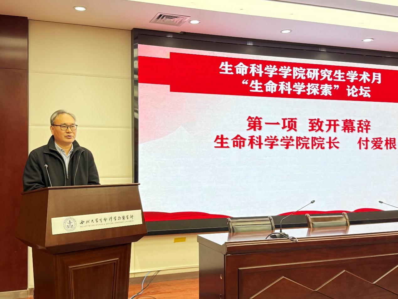 开幕式由学院党委书记刘小光主持,刘书记对本次活动的举办表示充分的肯定,他提到,论坛旨在通过一系列师生学术报告,激发研究生的科研热情,引导他们务实高效地开展实验工作,创造浓厚学术的人文氛围。院长付爱根教授在致辞中深刻阐述了科技发展对于国家进步的重要性,特别是国家科技自立自强规划的战略意义。他鼓励新时代的研究生们要勇于担当,在提升科研水平、推动科技创新的道路上不断前行。最后,他希望研究生们以好奇之心、求实之本和合作之风在探索生命奥秘的过程中成就属于自己的精彩人生。