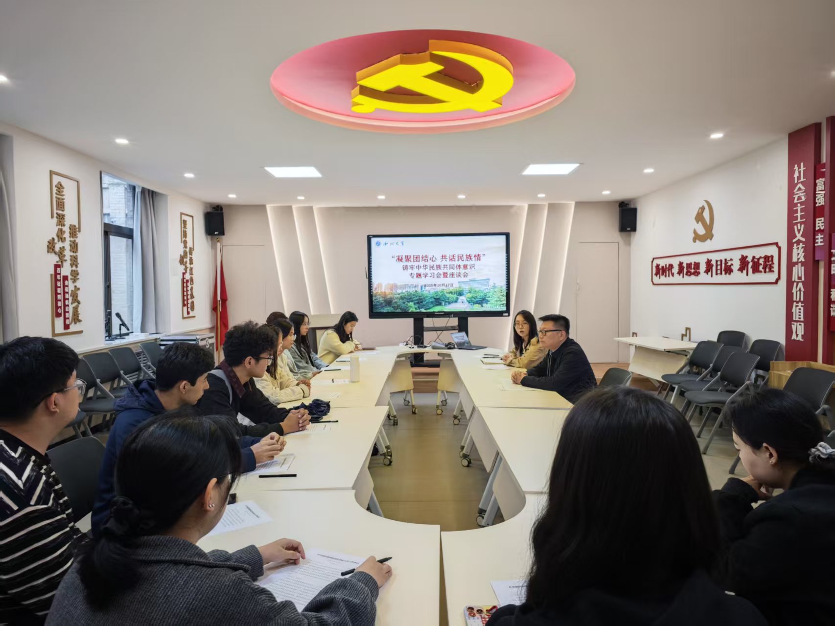党的十八大以来,我们党鲜明提出把铸牢中华民族共同体意识作为新时代党的民族工作的主线、作为民族地区各项工作的主线。为深入学习贯彻习近平总书记关于加强和改进民族工作的重要思想和中央民族工作会议精神,进一步强化各族学生铸牢中华民族共同体意识思想入脑入心,深入了解各族学生学习、生活、思想动态,2025年10月17日中午,学院于博雅会议室组织召开“凝聚团结心 共话民族情”铸牢中华民族共同体意识专题学习会暨座谈会。党委副书记陈露出席,各族学生代表共同参与。活动由辅导员郭佳惠主持。
