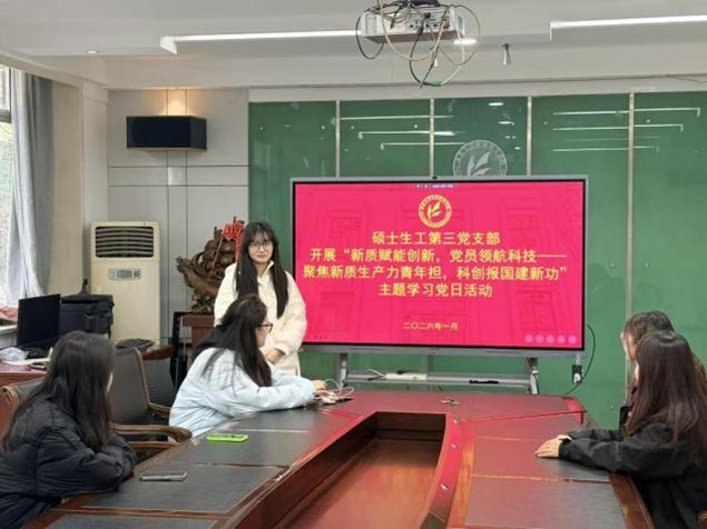 1月10日,为深入学习贯彻习近平总书记关于新质生产力的重要论述,引导青年党员将科研创新与国家战略需求紧密结合,硕士生工第三党支部开展“新质赋能创新,党员领航科技”主题党日活动。活动围绕新质生产力这一国家战略,结合生工学科特点深入探讨个人科研课题与国家发展需求的精准对接路径,通过“科研微攻关”“党员帮扶对子”等形式,将宏大战略目标拆解为具体科研任务,切实激励支部党员在学术攻坚中发挥先锋引领作用,践行科创报国初心。