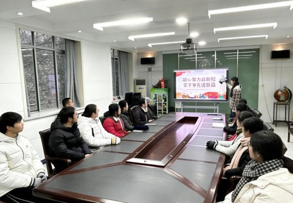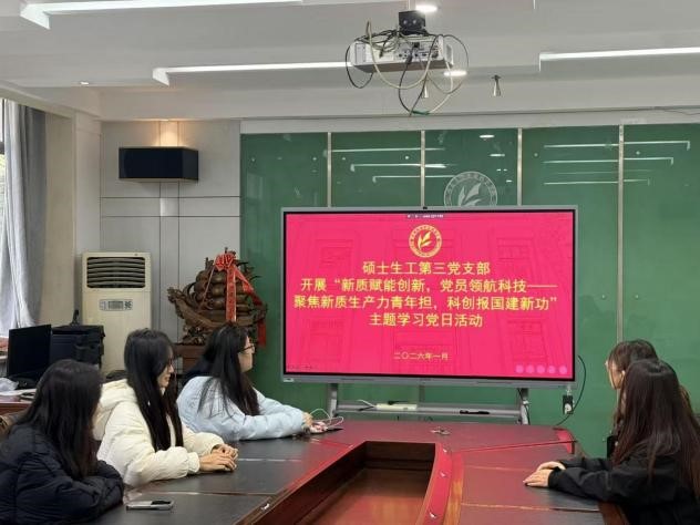 1月10日,博士第一党支部组织开展“凝心聚力启新程 实干争先谱新篇”主题学习活动。活动以专题学习与交流研讨相结合的形式开展,支部负责人围绕国家发展宏伟蓝图与青年党员使命担当作专题领学。与会党员结合自身科研方向,就“科研攻关如何体现实干精神”“新时代青年党员的责任担当”等议题展开热烈讨论。大家一致认为,要将个人发展融入国家发展大局,在学术创新中勇攀高峰。活动最后,全体党员重温入党誓词,进一步强化了党员身份意识,激励大家在科研报国实践中争当先锋、勇谱新篇。