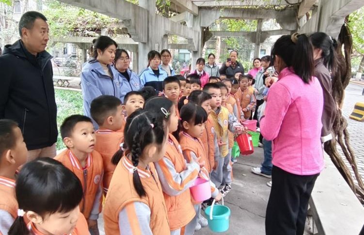 在PPT讲解完毕后,讲解志愿者们组织幼儿园小朋友们有序列队,有组织、有纪律地进入西北大学校园内,与在此等候的带队志愿者交接,由他们接过引导工作,准备进行植物采集。