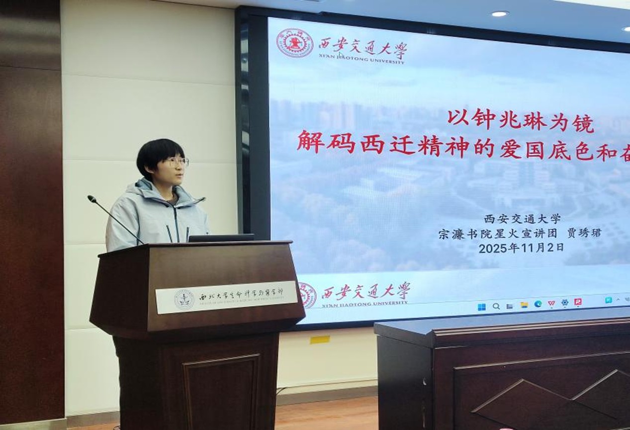 接下来,西安交通大学宗濂书院学生代表贾琇珺围绕“西迁精神”,结合先辈事迹与自身感悟分享交流,生动传递了扎根西部、爱国奉献的珍贵精神力量。