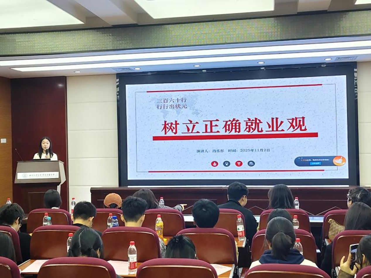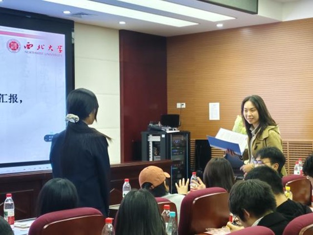 介绍环节结束后,进入主题汇报与讨论阶段。首先西北大学生命科学学院学生代表冯乐彤同学,以“高校专题-树立正确就业观”为主题展开详实汇报并组织热烈讨论,从职业方向探索、行业趋势分析等角度,为两校同学的职业规划提供了切实可行的思路。