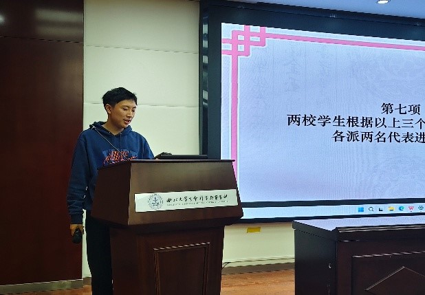 紧接着,西安交通大学宗濂书院学生会主席团成员王斌围绕宗濂书院的培养理念、学术氛围与特色活动展开分享,进一步增进了两院之间的相互了解与认同。