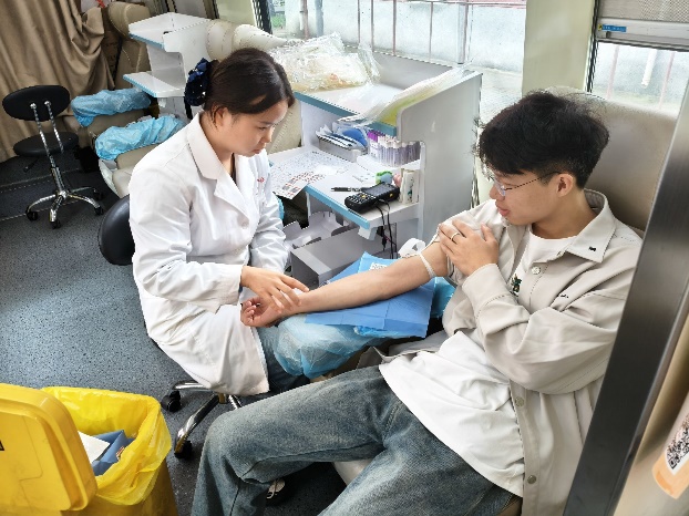 从初次献血的“新手”到坚持奉献的“常客”,同学们纷纷伸出手臂,看着鲜红的血液缓缓流入血袋,那是青春最赤诚的馈赠,更是点亮他人生命的火种。医护人员专业又温柔的操作,让整个献血过程充满暖意。