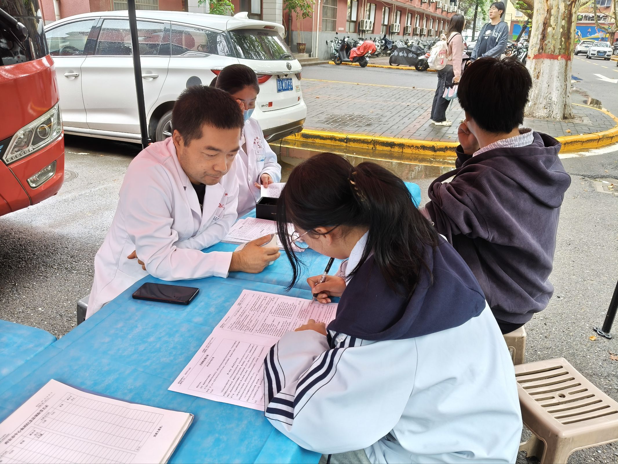 (志愿者与医护人员到位)