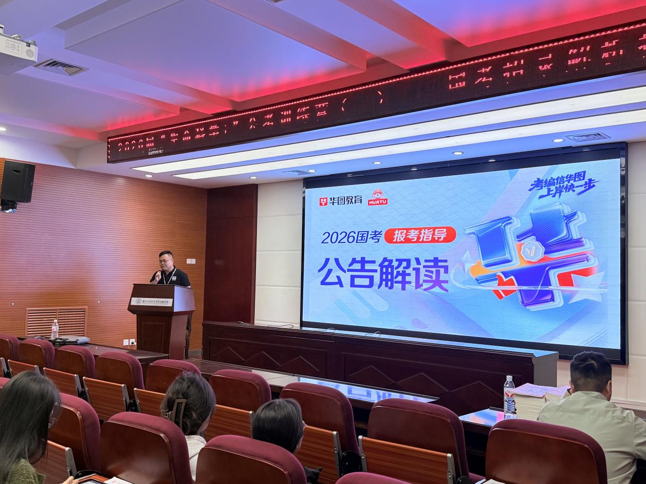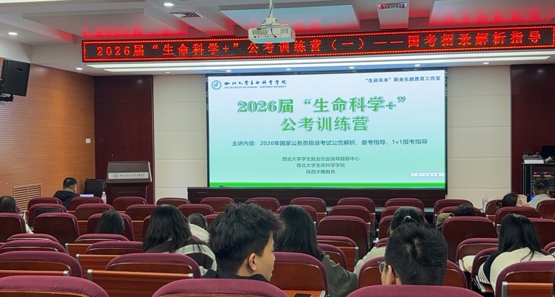 10月14日,2026年国家公务员考试公告与岗位表正式发布,报名通道将于10月15日开启。为帮助2026届毕业生深入了解公务员考试形势与国考招录情况,科学规划备考路径,赢在公考起跑线,10月15日下午,学院“生启未来”职业生涯教育工作室邀请陕西华图教育为合作单位,于博望报告厅举办2026届“生命科学+”公考训练营第一期——国考招录解析指导讲座。华图教育菁英讲师姚亚运担任主讲,50余名学生参与。活动由学院就业专干郭佳惠主持。