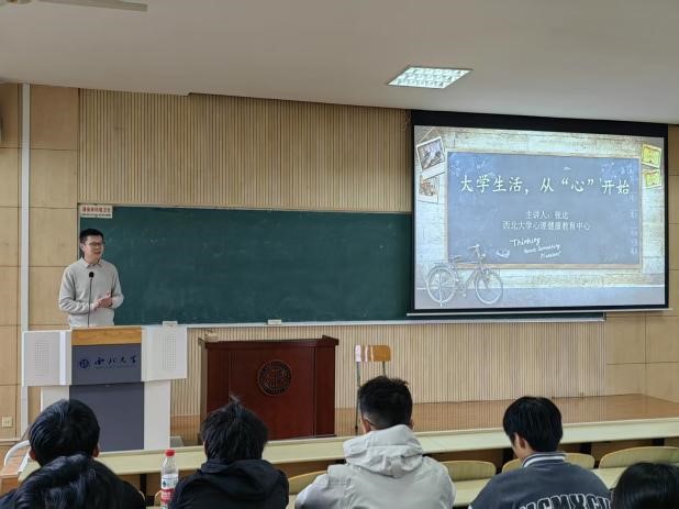 为普及心理健康知识,提升新生心理健康素养,10月24日上午,学院邀请校心理健康中心张达老师开展《大学生活,从“心”开始》主题讲座。张老师结合前期调研数据,强调了心理健康对大学生成长的重要性,系统介绍了心理健康的六大特征。并针对大学生活中心理调试的三大挑战,系统性提出了维护心理健康的实用性建议。