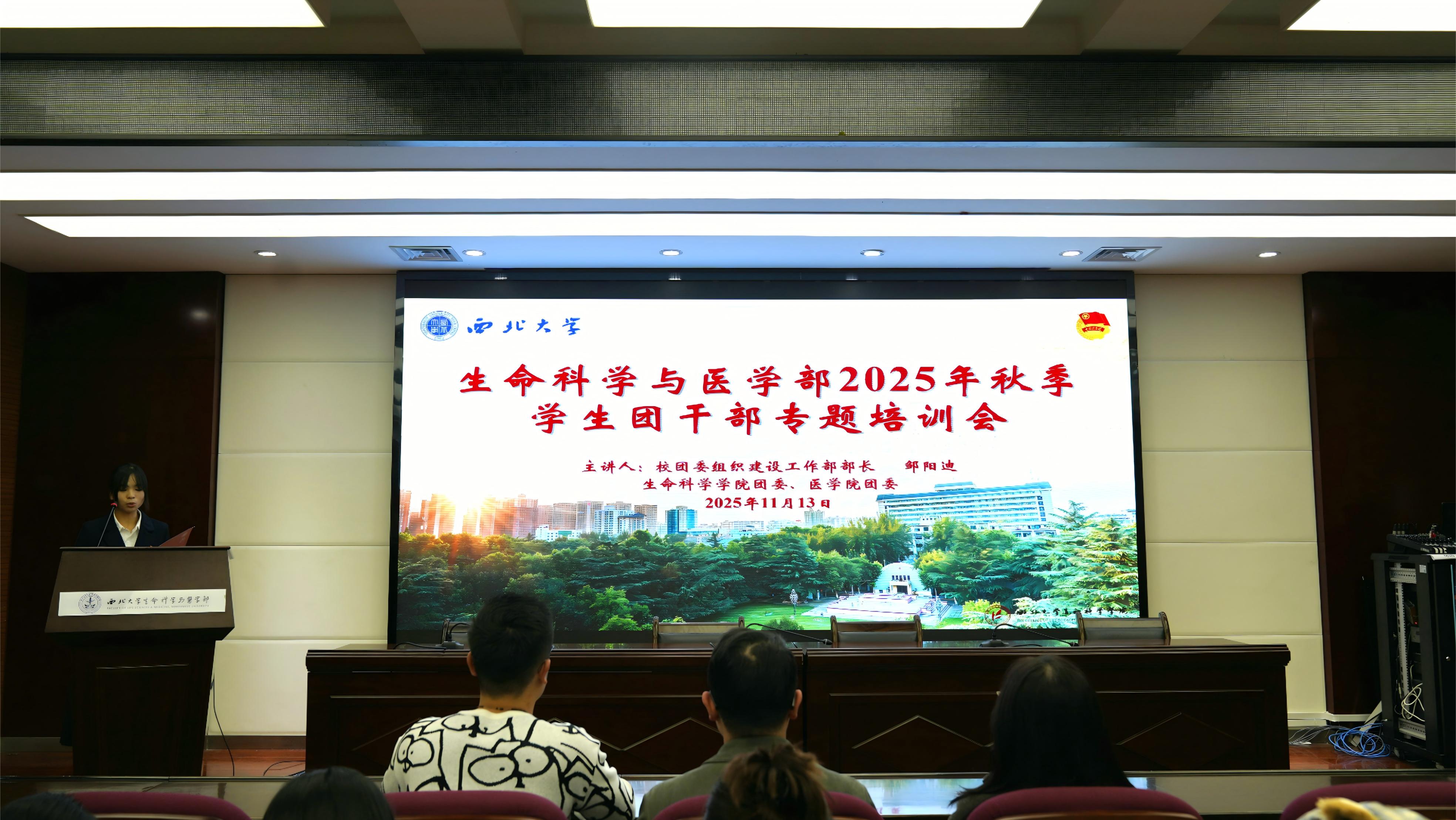为进一步规范团支部工作流程,提升基层团干部的履职能力,生命科学学院团委联合医学院团委于11月13日在博望报告厅举办了2025年秋季学生团干部专题培训会。本次培训会邀请到校团委组织建设工作部部长邹阳迪老师担任主讲,生命科学学院团委副书记范铭沁老师、医学院团委副书记雷蕾老师、两院学生团干部90余人共同参会。