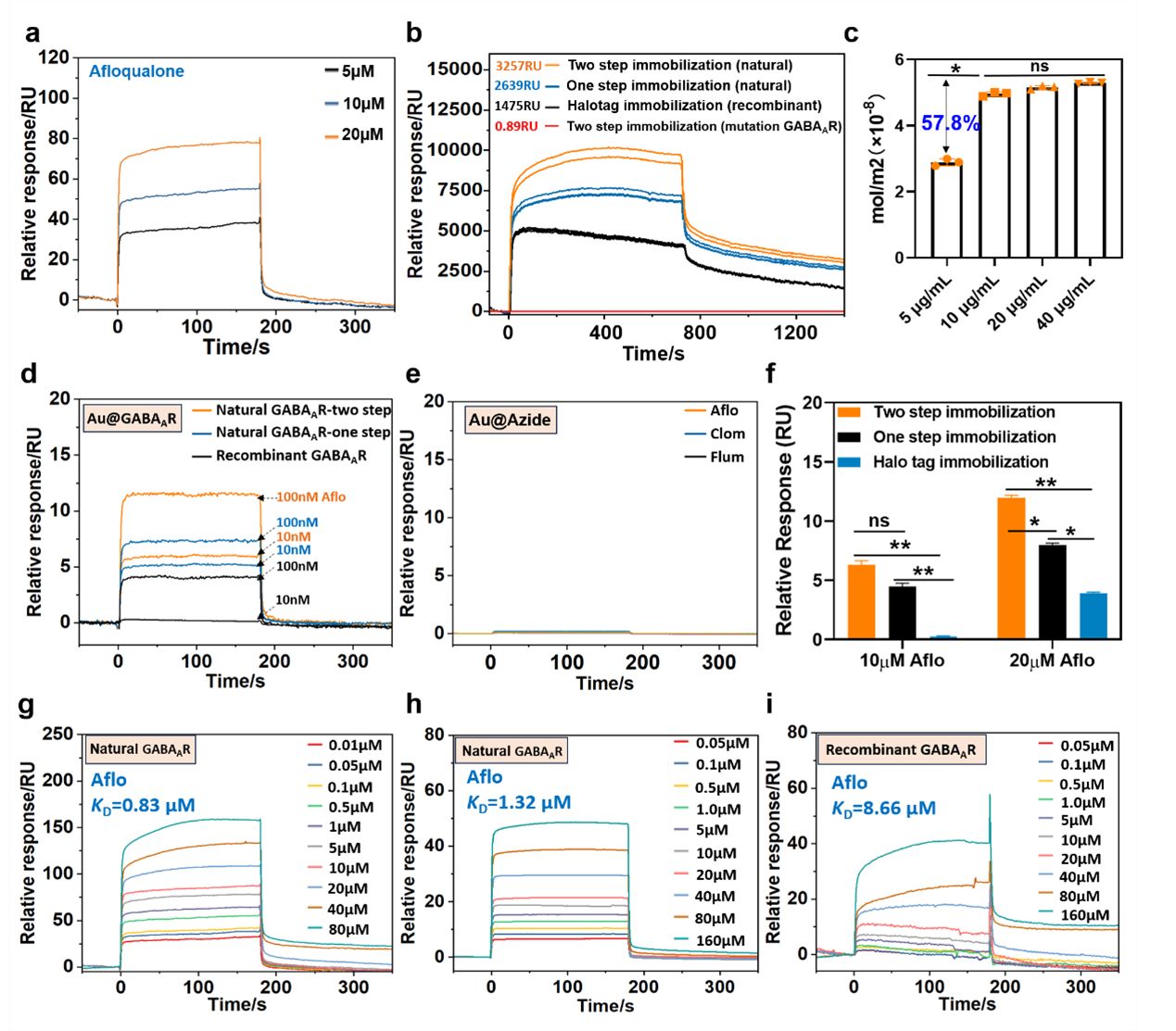 图3 固定化内源天然态GABAA受体增强SPR检测灵敏度