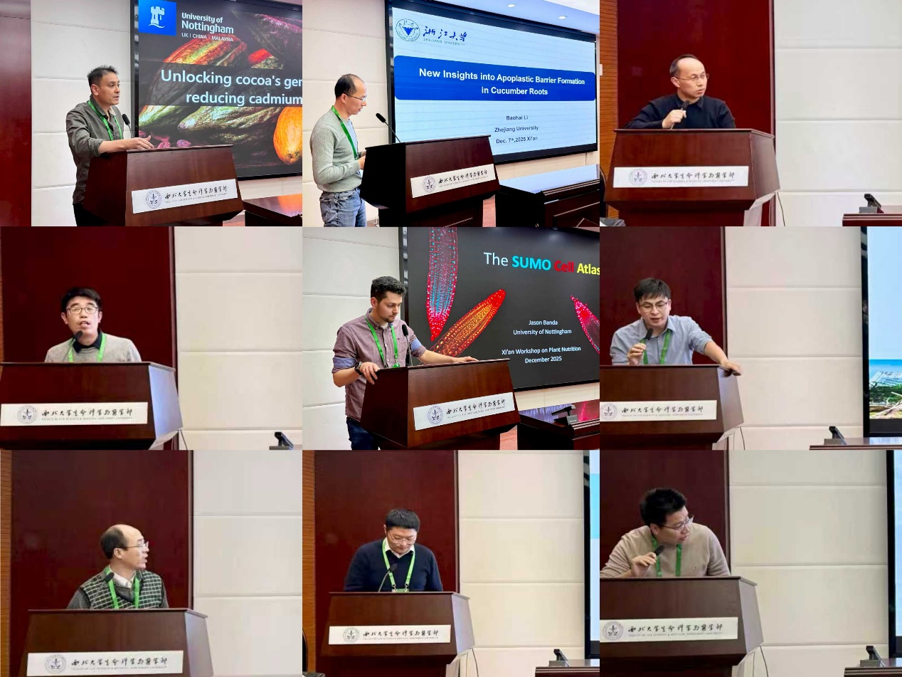 本次研讨会由易可可、Gabriel Castrillo、贾贤卿和高轶群四位教授共同主持,以 “Feeding the Future: Young Innovators in Plant Nutrition” 为主题,于 12 月 6 日至 7 日连续两天围绕植物营养信号传导与稳态调控、土壤—植物—微生物互作与养分循环、养分互作与高效利用、营养相关胁迫响应与适应机制等前沿方向,开展了 20 余场学术报告与专题研讨。受邀专家来自诺丁汉大学、中国科学院、中国农业大学、浙江大学、南京农业大学、西北农林科技大学、西北大学等国内外高校和科研院所,系统展示了铁、锌、磷、氮等关键营养元素的分子调控机制、植物-微生物互作调控机制、作物高效利用策略及逆境适应等方面的最新研究进展,充分体现了多学科交叉融合的发展特色。