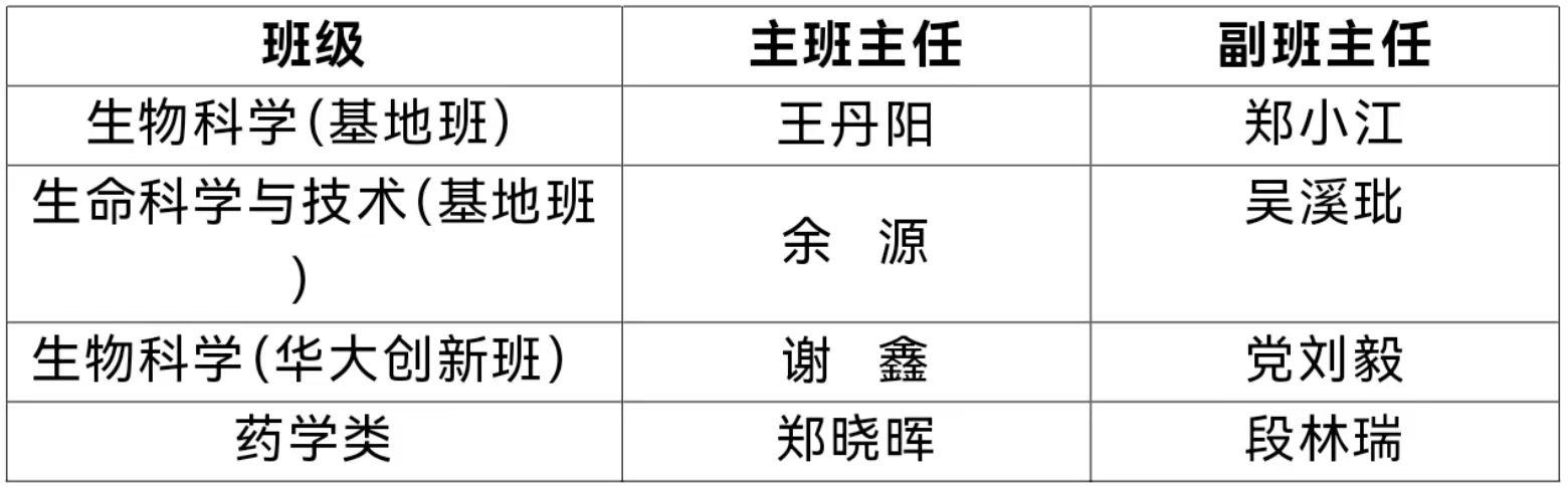 生命科学学院关于2025级本科生班主任 选聘结果的通知