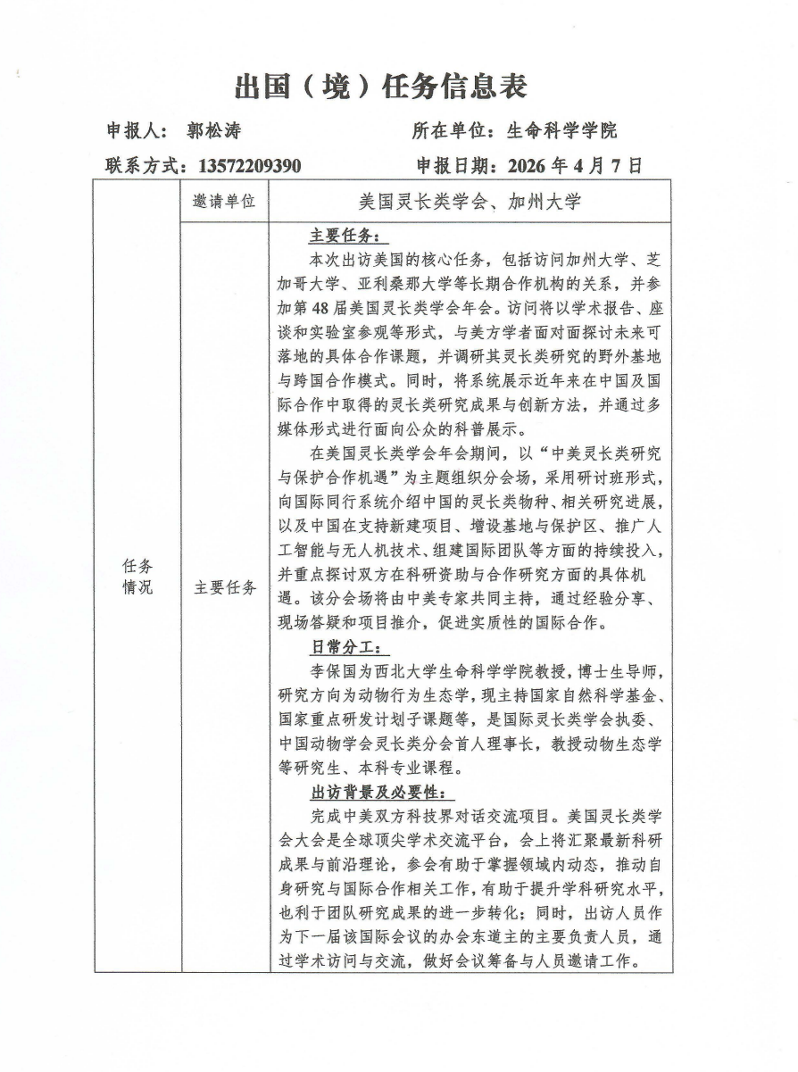 出国(境)任务信息表