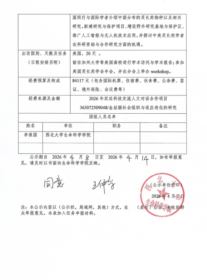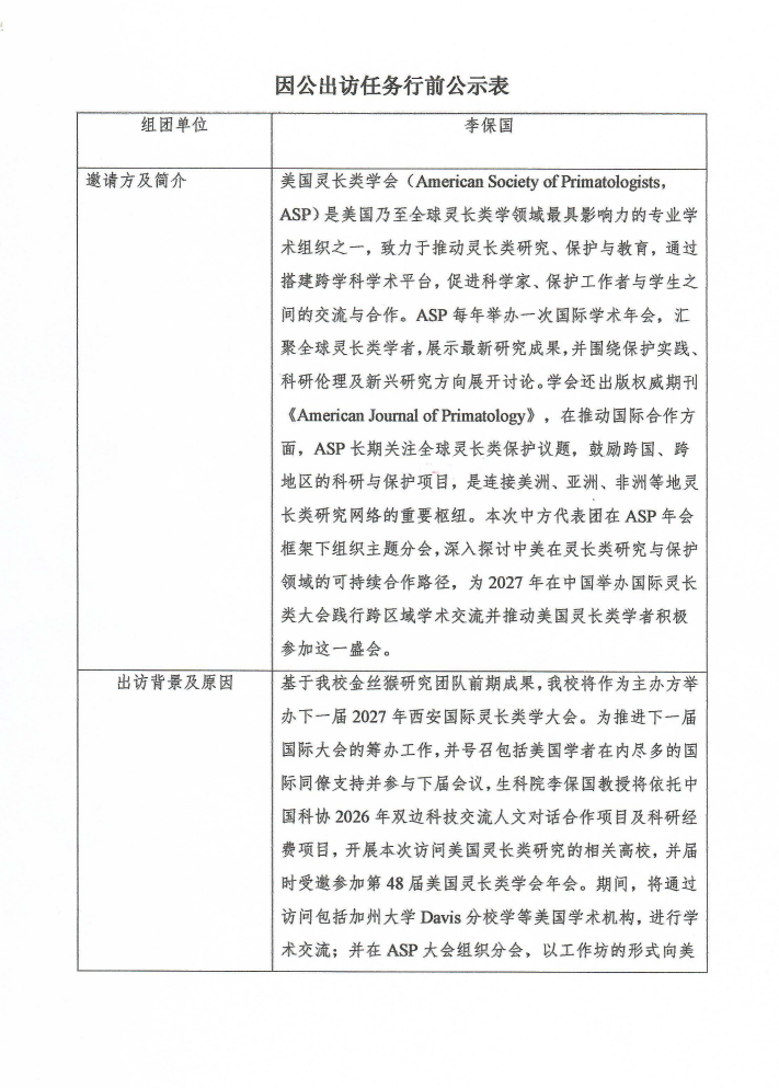 因公出访任务行前公示表