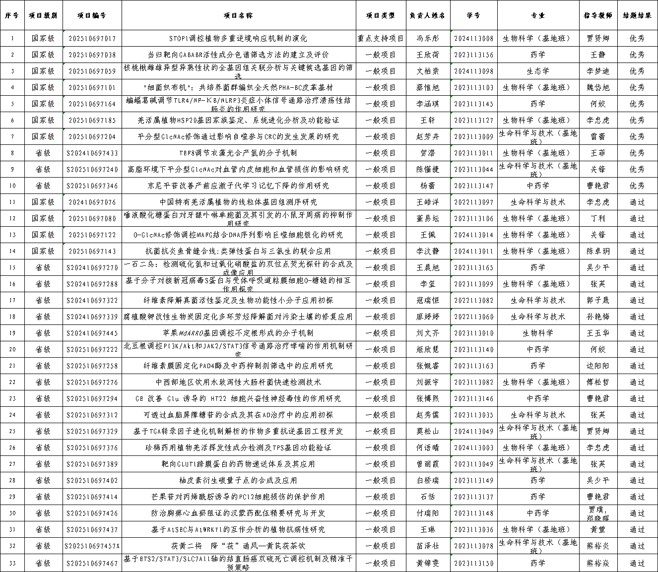 西北大学生命科学学院2026年度大学生创新训练计划项目结题结果公示