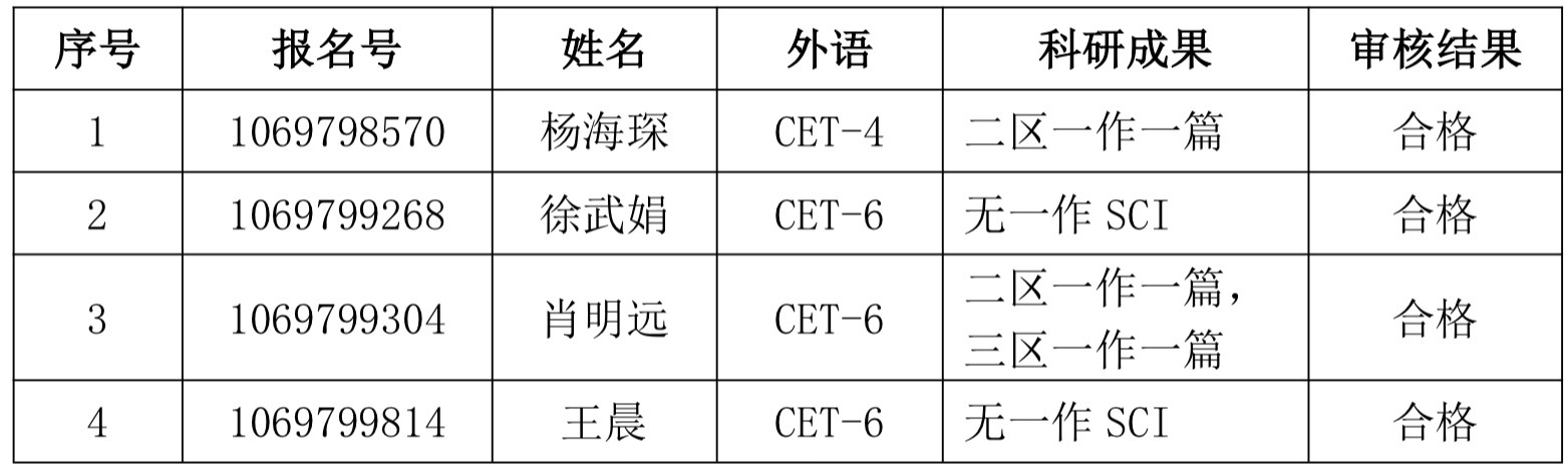 ③往届生提交硕士毕业证、学位证、《中国高等教育学历认证报告》或《教育部学历证书电子注册备案表》复印件。